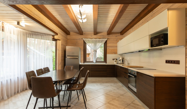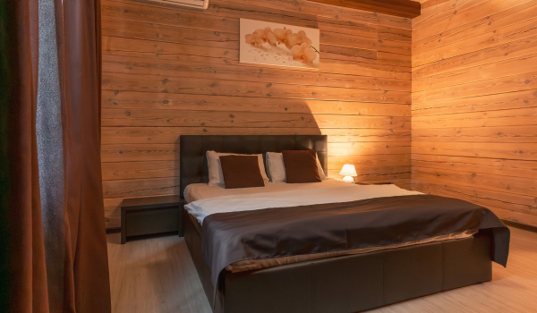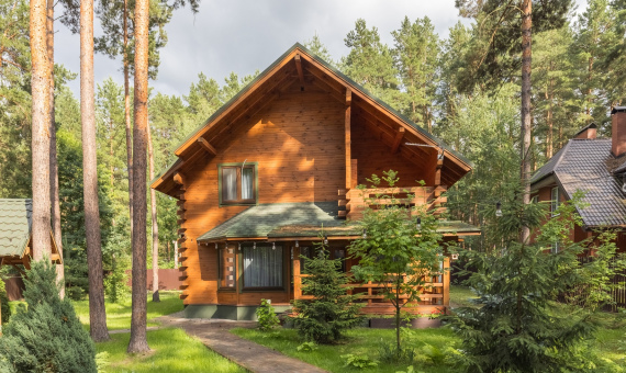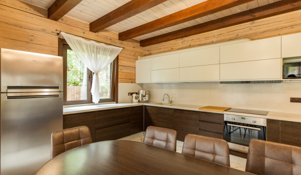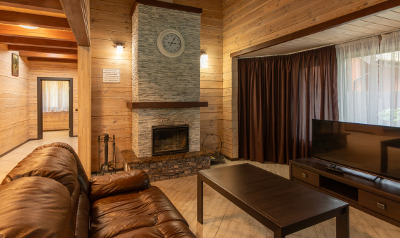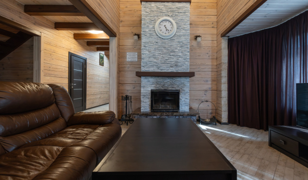 Двоповерховий просторий будинок з великими вікнами, високими стелями та дерев'яним інтер’єром. У помешканні — три спальні, кухня-студія, камінна зона, два санвузли.