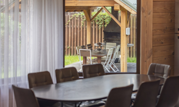 Будинок здається в оренду на добу або довше. Розташований серед дерев, в оточенні природи. Простора тераса та внутрішнє подвір’я — для відпочинку або роботи у тиші. Ідеальний варіант для релаксу або заміського формату життя.